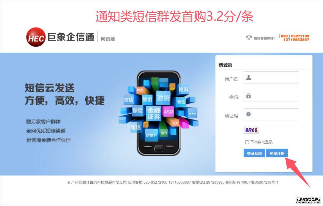 通知類短信群發(fā)首購3分起,免費注冊試用